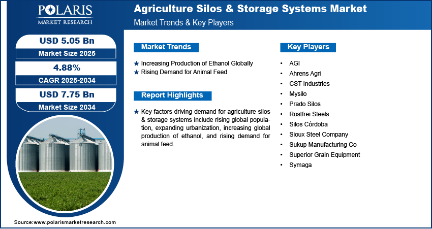 Agriculture Silos & Storage Systems Market Forecasted at USD 7.75 Billion by 2034 | CAGR Set at 4.88%
