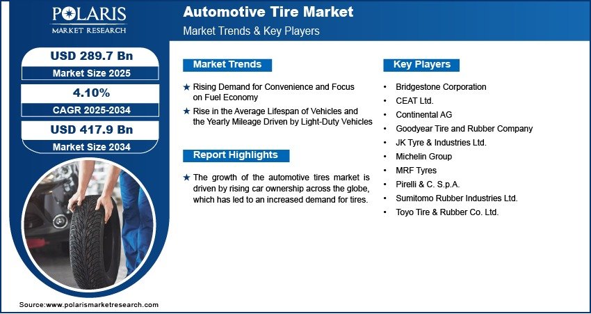 Automotive Tire Market to Reach USD 417.9 Billion by 2034, Growing at a CAGR of 4.10%
