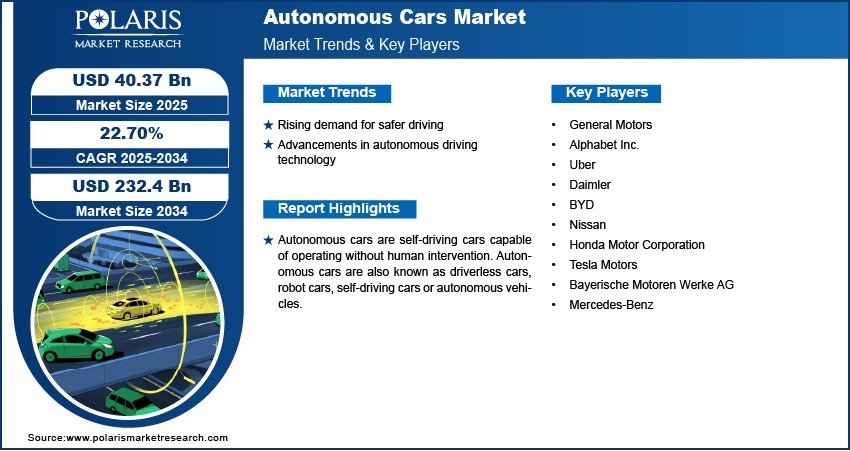 Autonomous Cars Market Projected to Reach USD 232.4 Billion by 2034, Expanding at a CAGR of 22.70%