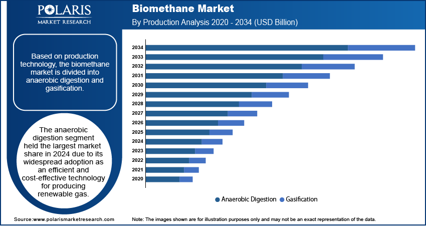 • In terms of production technology, the anaerobic digestion segment held the largest biomethane market share in 2024 due to its widespread adoption as an efficient and cost-effective technology for producing renewable gas.