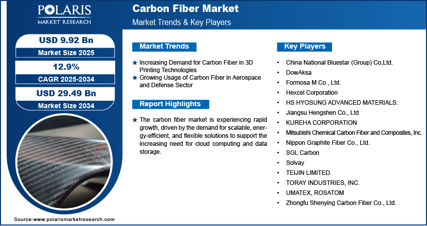 Carbon Fiber Market to Surpass USD 29.49 Billion by 2034 | CAGR: 12.9% Growth