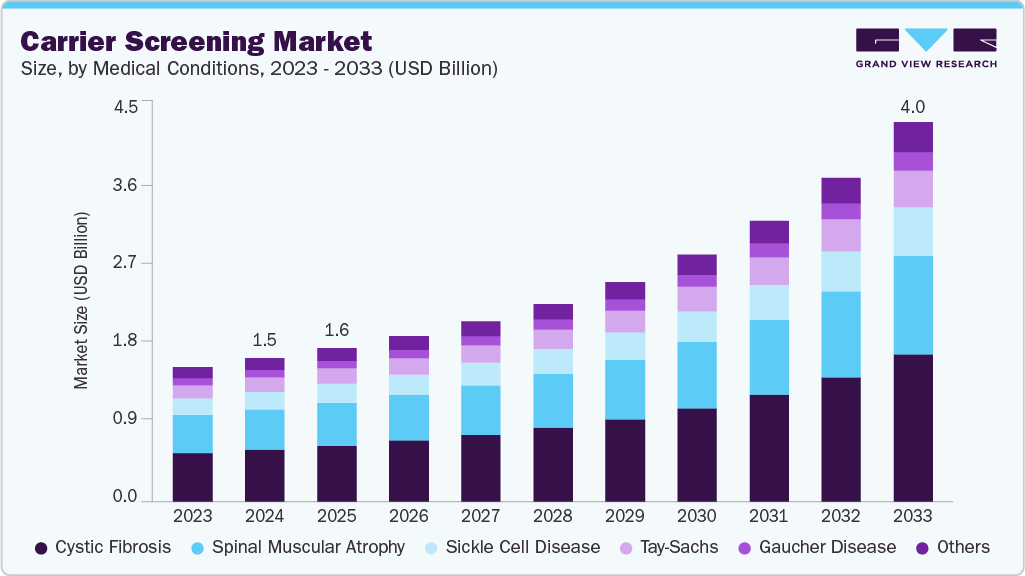Carrier Screening growing at a CAGR of 11.95% from 2025 to 2033