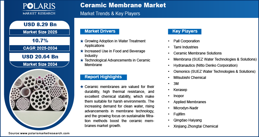 Ceramic Membrane Market Size Estimated at $20.64 Billion by 2034 | CAGR: 10.7%