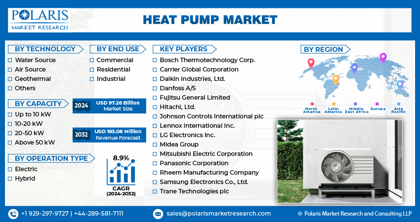Heat Pump Market Projected to Reach $193.08 Billion by 2032, Growing at a CAGR of 8.9%