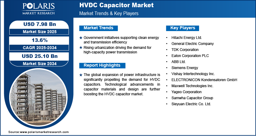 HVDC Capacitor Market Size Worth USD 25.10 Billion by 2034 | CAGR: 13.6%