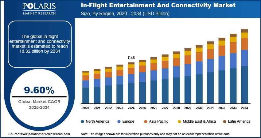 The global in-flight entertainment and connectivity (IFEC) market was valued at USD 7.46 billion in 2024 and is expected to grow at a CAGR of 9.60% from 2025 to 2034. This growth is driven by increasing air travel and rising passenger demand for enhanced onboard digital experiences.
