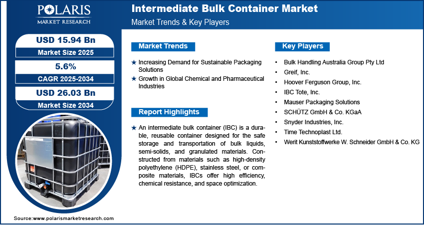 Intermediate Bulk Container Market to Reach USD 26.03 Billion by 2034 | CAGR: 5.6%