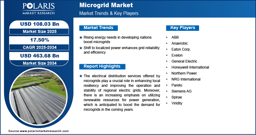 Microgrid Market is estimated to surge to USD 463.68 Billion by 2034, registering a robust CAGR of 17.50%