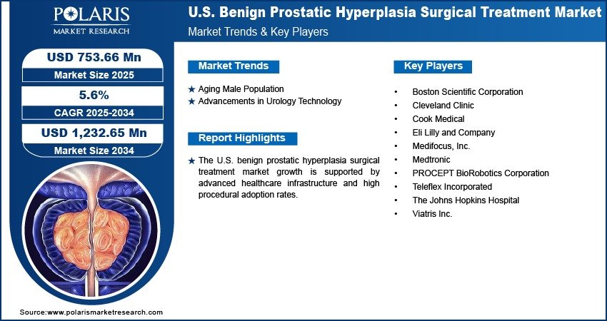 U.S. Benign Prostatic Hyperplasia Surgical Treatment Market Expected to Reach USD 1,232.65 Million by 2034, Growing at a CAGR of 5.6%