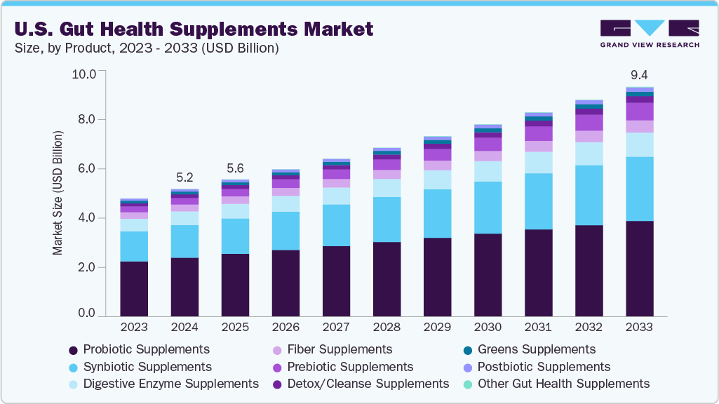 U.S. Gut Health Supplements Market growing at a CAGR of 6.7% from 2025 to 2033