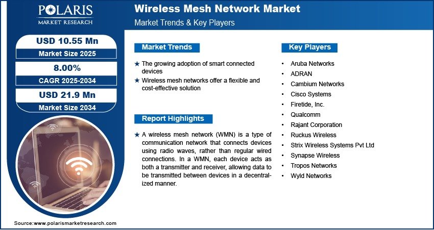 Wireless Mesh Network Market Projected to Reach USD 21.9 Billion by 2034, Growing at a CAGR of 8.00%